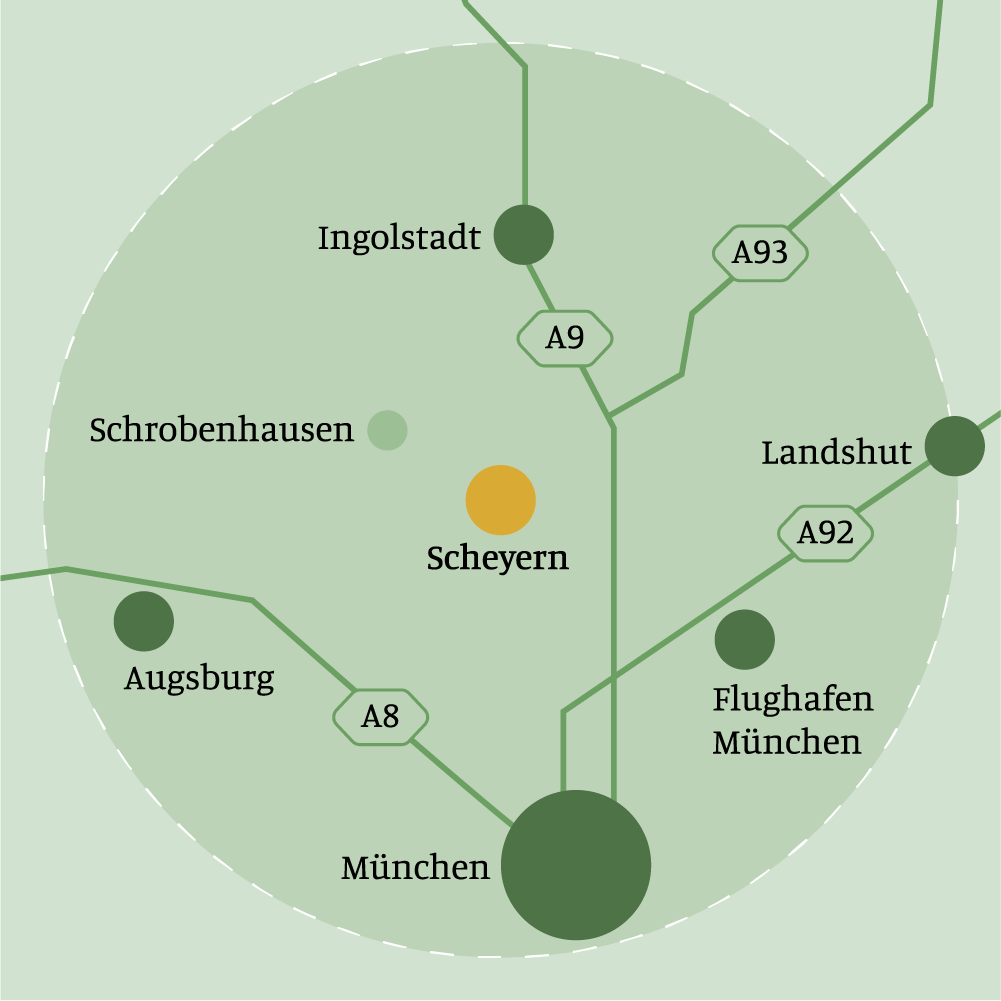Nur 50 Kilometer nördlich von München, dem Flughafen München, Landshut, Ingolstadt und Augsburg liegt Scheyern – idyllisch eingebettet in die weiten Hügel und Hopfengärten der Hallertau.